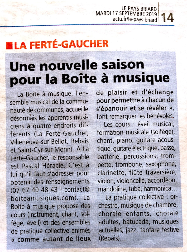 La Boite à Musiques crée l’événement dans la région. Compte rendu du Pays Briard à propos de la présentation en conseil communautaire …